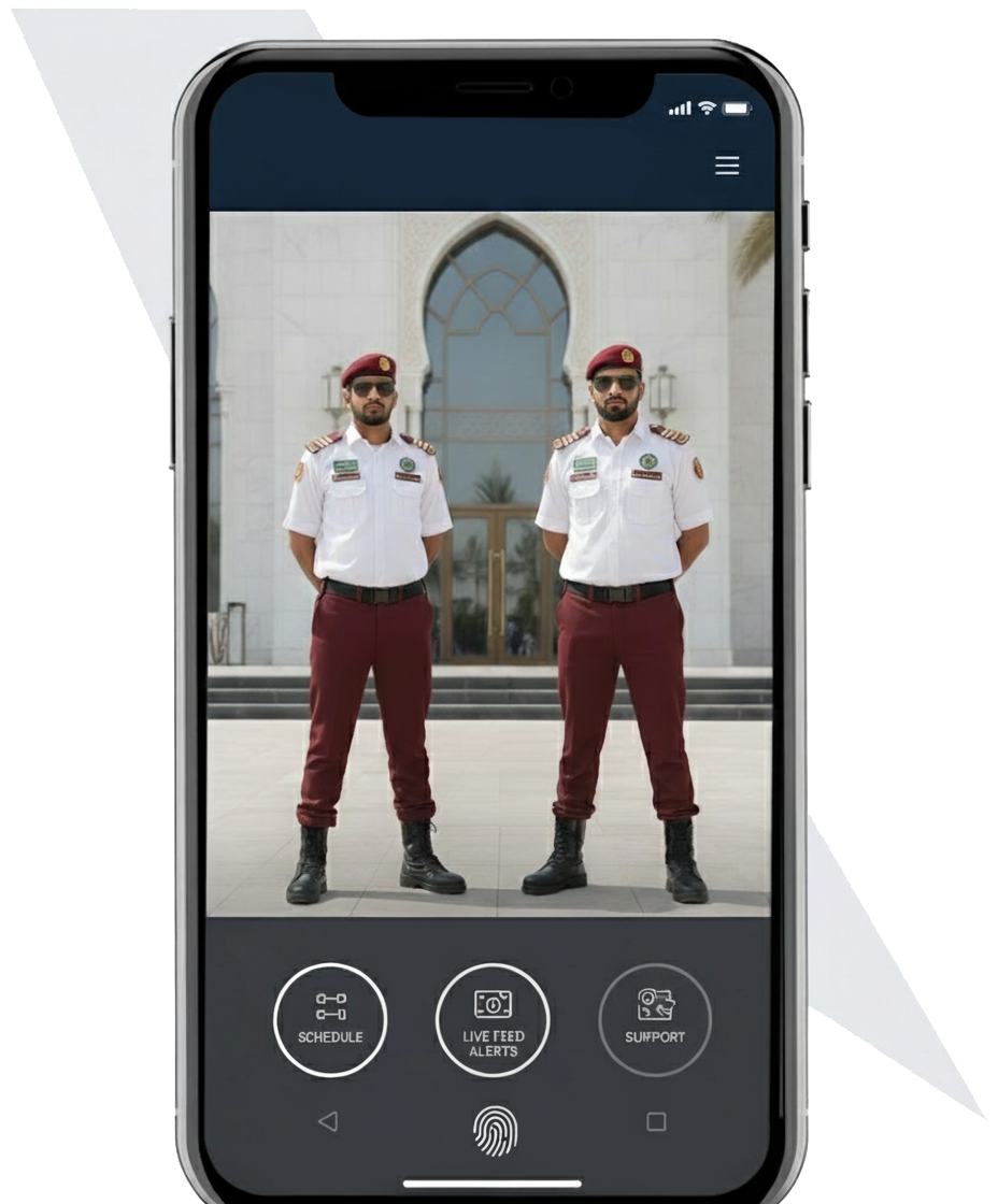 "نفتخر بفريق أمني مدرّب على أعلى المستويات لخدمة منشآتكم وأفرادكم."